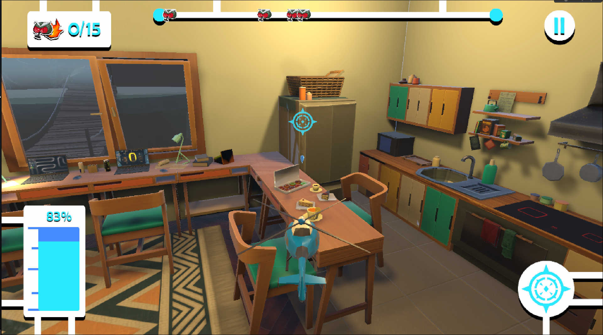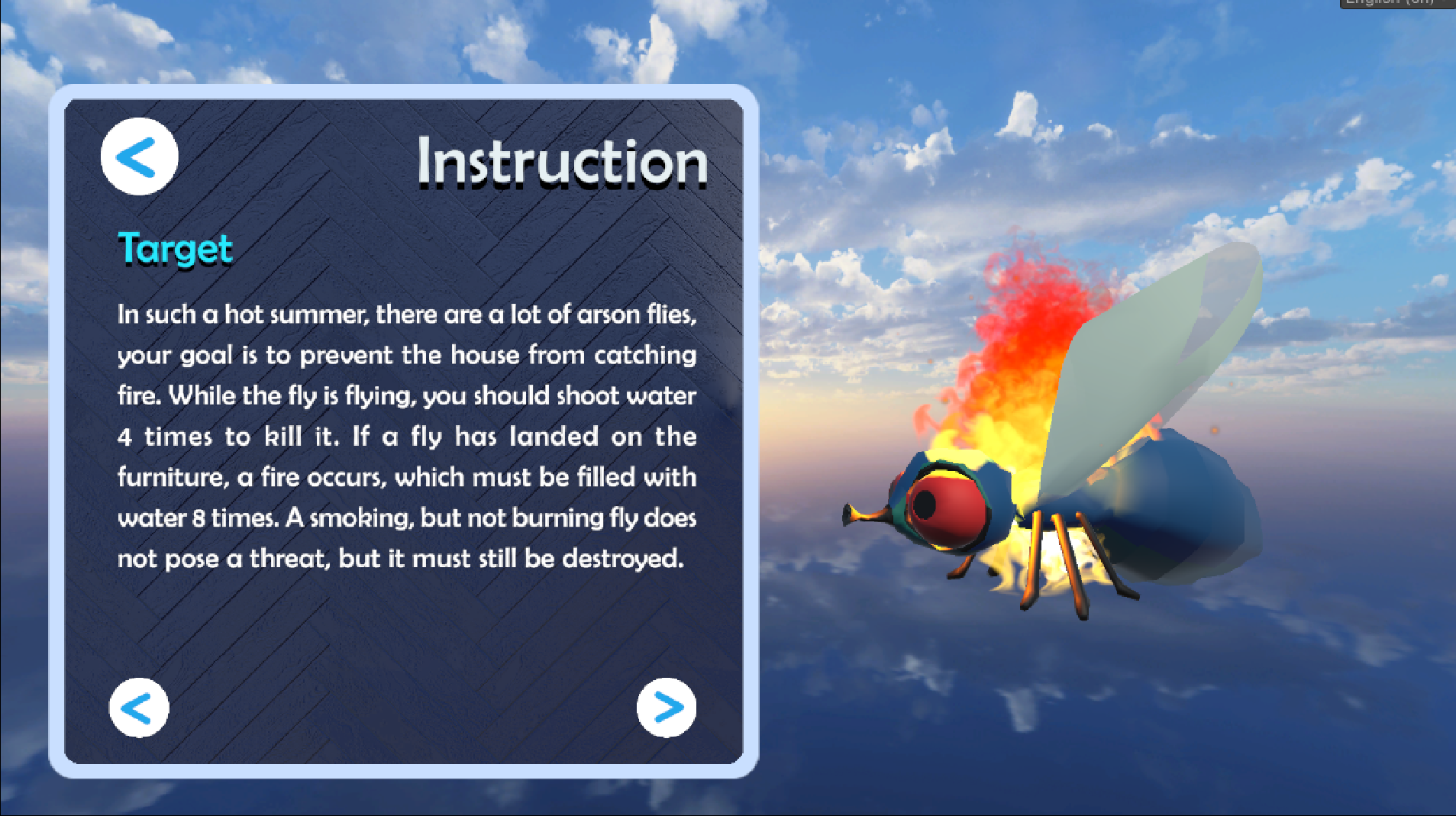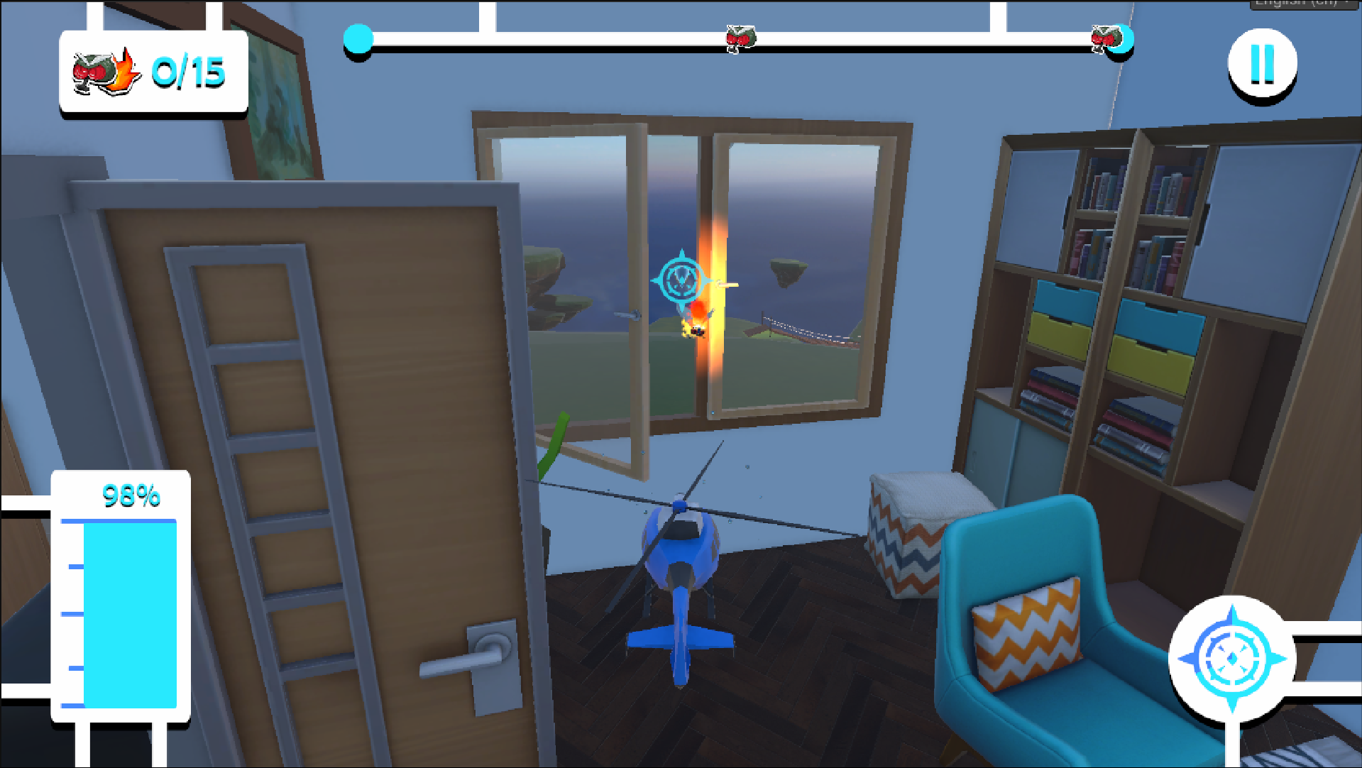 A fun simulator of controlling a toy helicopter. You have to fly around the house and fight the burning flies that can set the house on fire